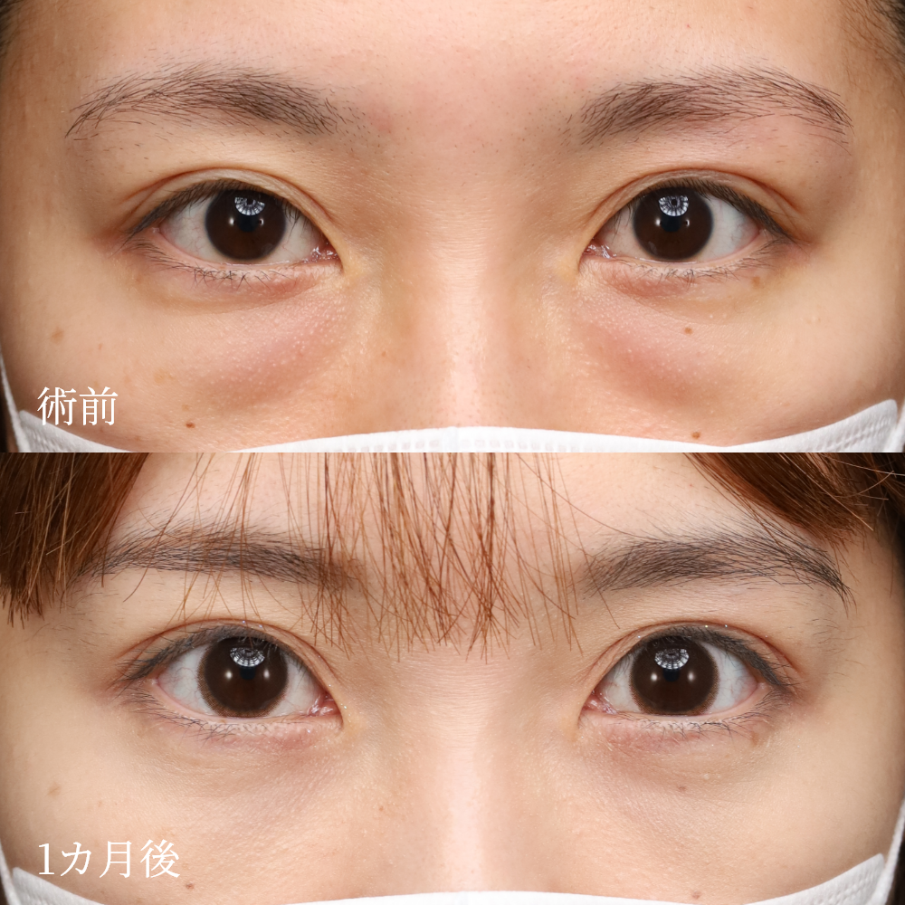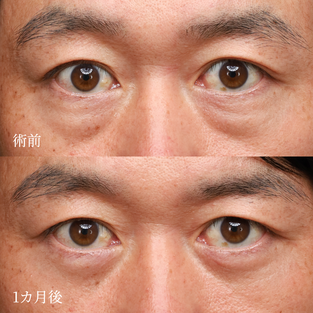 主に加齢に伴う肌のハリや弾力の低下により、目の下の脂肪(眼窩脂肪)が前に出ることが、目の下のクマやたるみ(ふくらみ)の原因です。この脂肪を適切な量だけ除去することで、目元を若々しく戻すことが可能です。